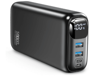 Такий потужний зовнішній акумулятор стане справжнім порятунком для активних людей та мандрівників. Місткість у 50 000 mAh дозволяє заряджати смартфон та інші пристрої безліч разів, а швидка зарядка робить використання максимально зручним. Це подарунок, який гарантовано стане в нагоді, і отримати його на Новий рік — одне задоволення. Практичний, універсальний та незамінний у повсякденному житті.