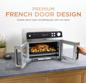 Еще одна свежая новинка от Ninja — фритюрница French Door Premier, которая стала первой моделью бренда с французской дверцей. Устройство выполнено в стильном корпусе из нержавеющей стали и предлагает 10 программ приготовления, что позволяет легко выбирать режим под любое блюдо. С максимальной температурой до 450°F (около 232°C) фритюрница подходит для приготовления как печенья, так и пиццы, а также множества других блюд.