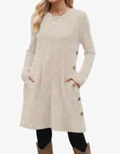Это элегантное платье-свитер от ANRABESS сочетает в себе уют трикотажа и стильный силуэт, идеально подходящий для прохладных сезонов. Материал из вискозы, нейлона и полиэстера тянется и мягко облегает фигуру, создавая тёплый и комфортный образ без ощущения стянутости. Модель имеет длинные рукава, круглый вырез и аккуратный пояс-завязку на талии, который подчёркивает линию силуэта и добавляет женственности. Боковые разрезы на юбке придают движению лёгкость и делают наряд более динамичным при ходьбе. Такое платье легко комбинировать с ботильонами, высокими сапогами или плотными колготками для стильного городского лука. Оно подходит для самых разных случаев — от повседневной прогулки до ужина или вечерней встречи. Благодаря универсальному дизайну и нейтральным оттенкам платье легко вписывается в гардероб и сочетается с аксессуарами. Эта модель станет отличным выбором для тех, кто ценит комфорт, тепло и модный образ в холодное время года.