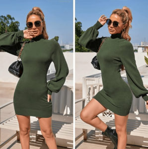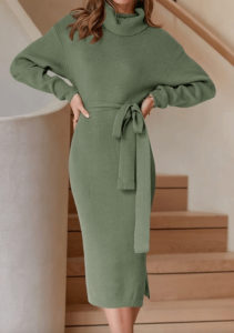 EXLURA Женское платье-свитер с высоким воротником и длинными рукавами