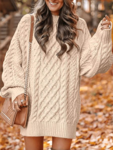 Это уютное вязаное платье-свитер от ANRABESS выполнено в свободном, слегка оверсайз-крое, который отлично смотрится на любой фигуре и придаёт образу расслабленную элегантность. Изделие с характерным косами и плотной вязкой выглядит модно и одновременно согревает в прохладную погоду, делая его идеальным выбором для осени и зимы. Длина до середины бедра позволяет сочетать платье с плотными колготками, леггинсами или высокими сапогами, создавая стильный многослойный лук. Мягкая акриловая ткань приятна к телу и не вызывает ощущения раздражения, что особенно важно для повседневного комфорта. Простая круглая горловина и длинные рукава делают модель универсальной как для прогулок, так и для повседневных встреч или работы. Свободный силуэт позволяет легко двигаться, не стесняя движений, и остаётся стильным даже без дополнительных аксессуаров. Это платье-свитер универсально вписывается в гардероб — его можно носить как в будни, так и на выходных, в кафé или на прогулке. Благодаря своей текстуре и дизайну оно выглядит дороже своей цены и станет базовой вещью для осенне-зимнего сезона.