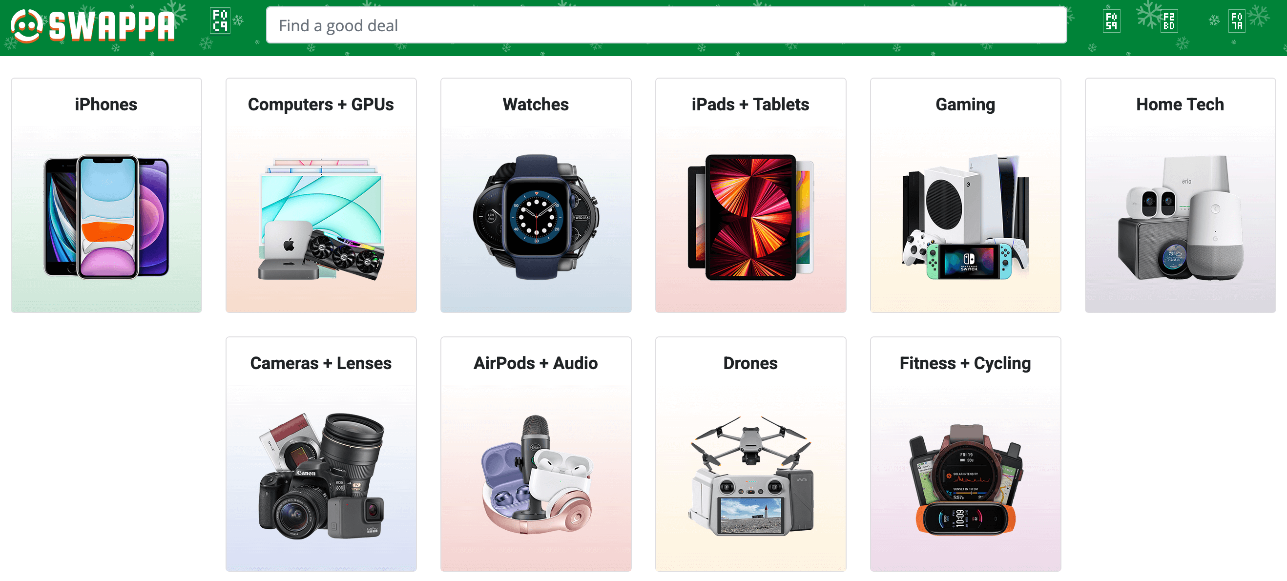 Сайт Swappa влаштований просто та логічно. Вже на головній сторінці представлені ключові категорії: