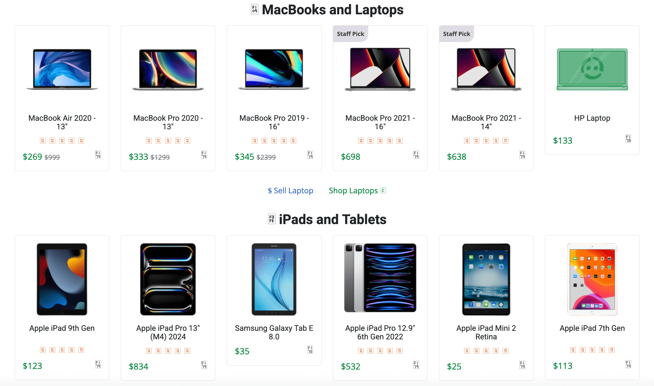 На Swappa легко знайти iPhone та MacBook минулих поколінь, наприклад, iPhone 14 або MacBook Air на M2. Часто пристрої продаються у відмінному стані, з оригінальними аксесуарами та відчутною економією порівняно з новими моделями.
