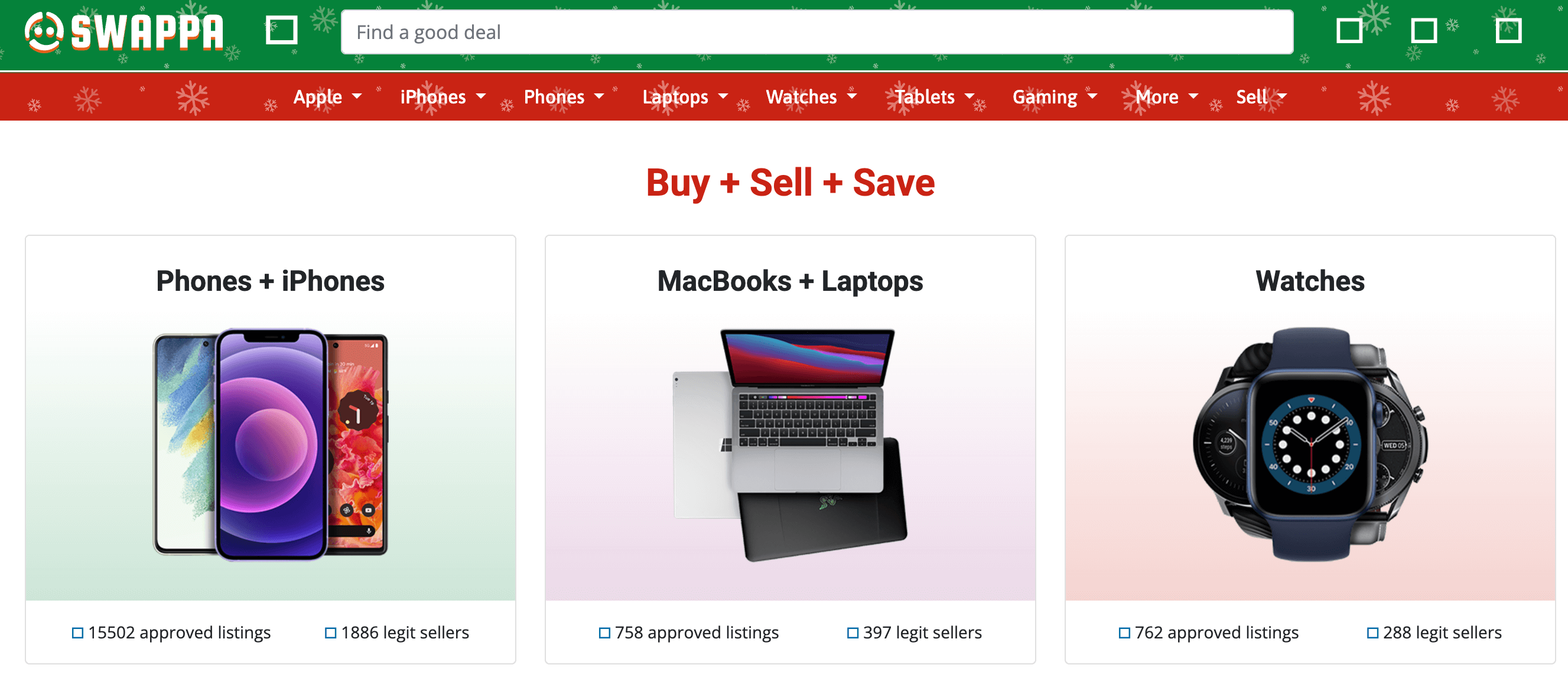 Swappa — це маркетплейс формату “користувач → користувач”, де приватні особи продають техніку безпосередньо один одному, а платформа виступає гарантом безпеки та прозорості угоди. Swappa не просто розміщує оголошення, а суворо контролює весь процес, що особливо важливо при покупці техніки Apple.